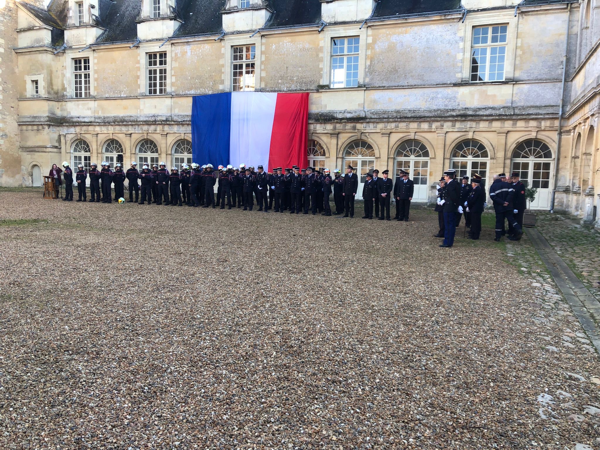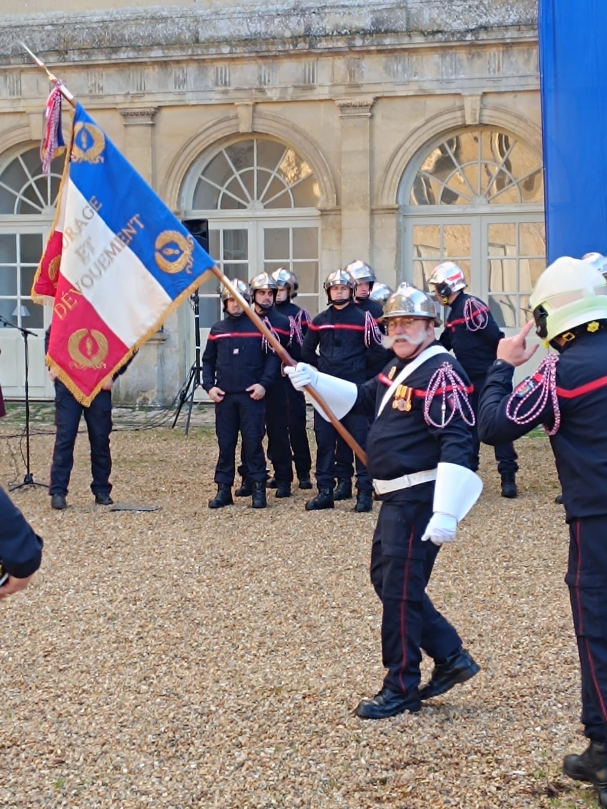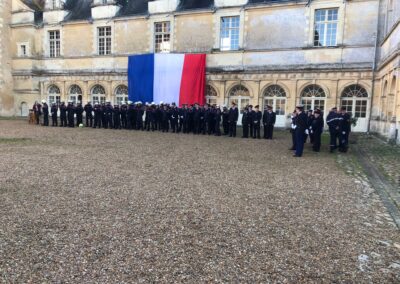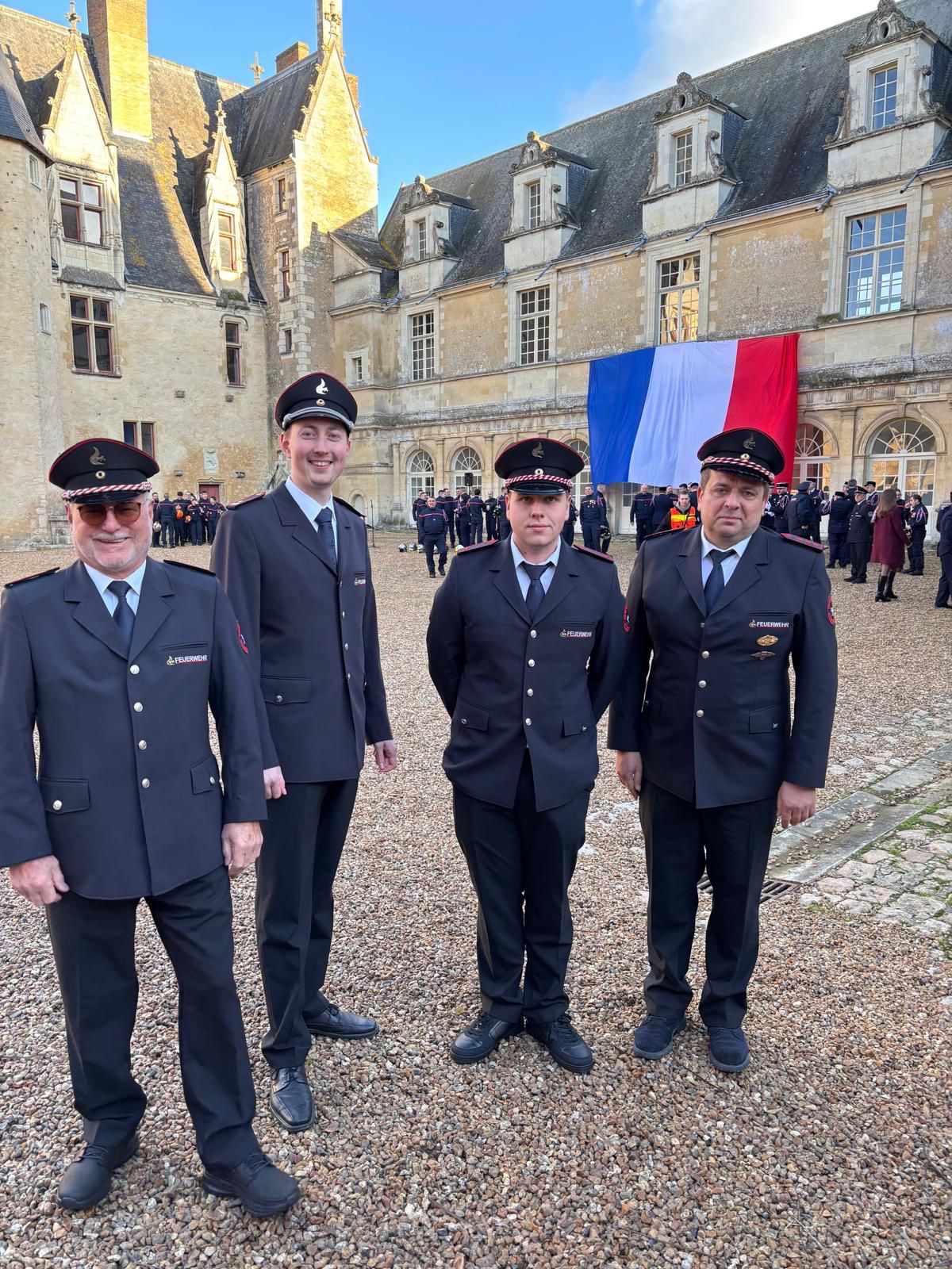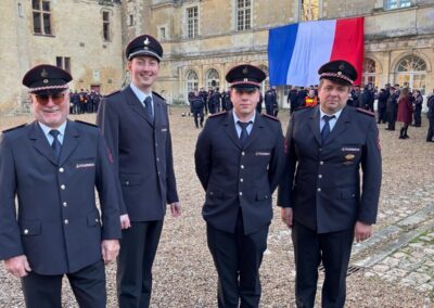 Der Samstag stand im Zeichen der Ehrungen und Verabschiedungen, zunächst im Innenhof des Schlosses, anschließend im Magazin mit Reden der verschiedenen geladenen Gäste aus Feuerwehr, Gendarmerie und Politik, in denen auch u.a. die deutsch-französische Feuerwehrfreundschaft als sehr vorbildlich und vertrauensvoll hervorgehoben wurde. Danach durften wir im Sale de Fete ein buntes Programm mit 6-Gänge-Menü bis in die frühen Morgenstunden mit viel Spaß genießen.